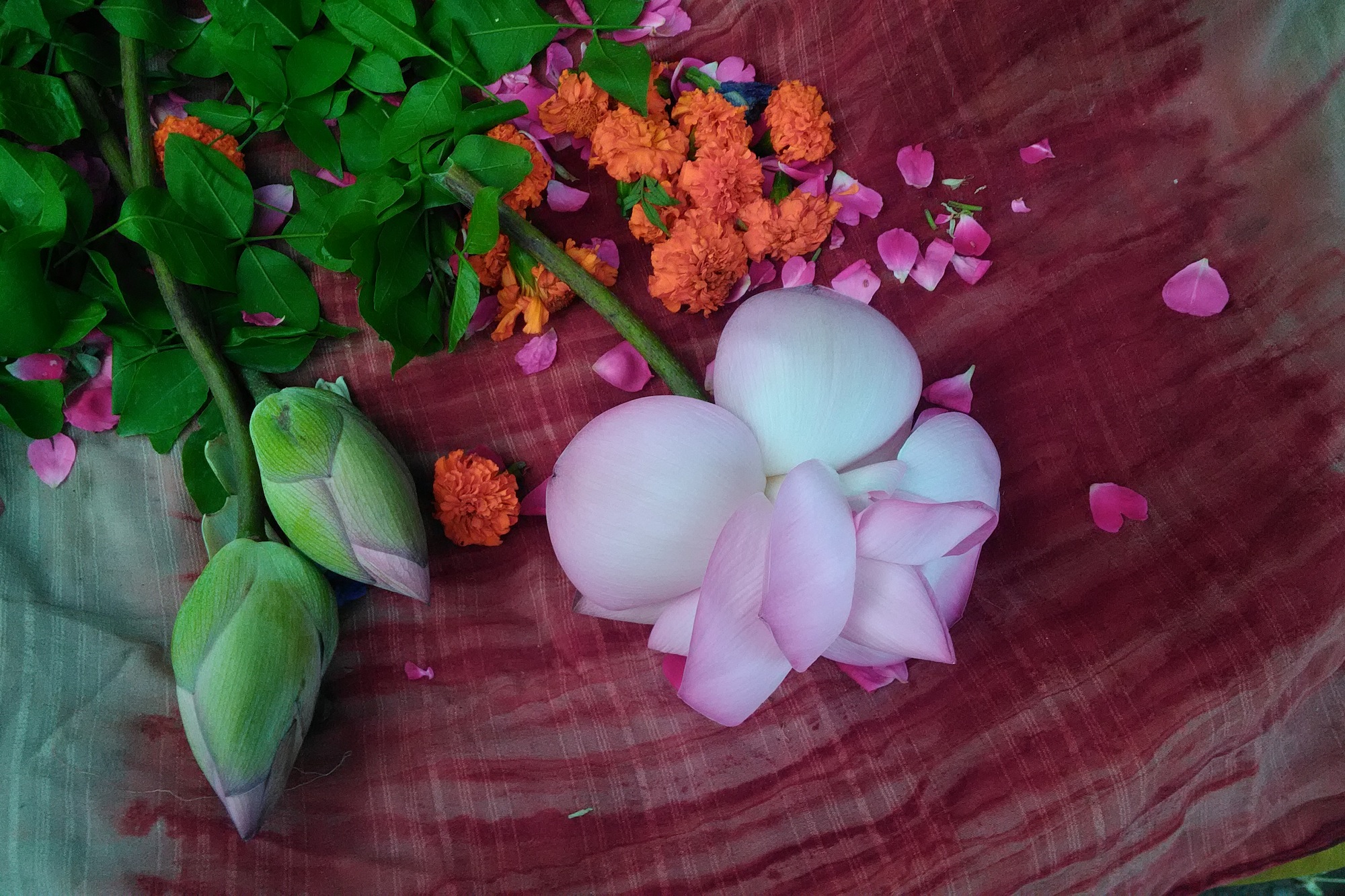 写真はインドの道端にあるお花屋さん。といっても、お寺にお供えするお花。