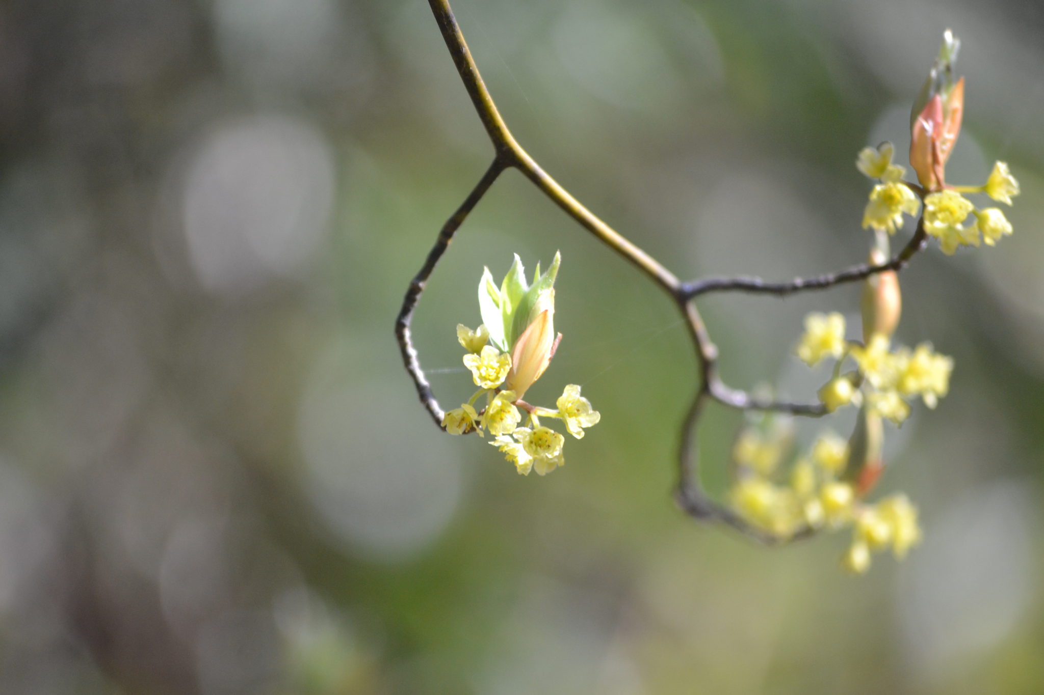 高野山弁天岳への山道、新芽から春の歌が聞こえてきそうです。大きな大きな山の命の中で生まれる小さな小さな芽の命。