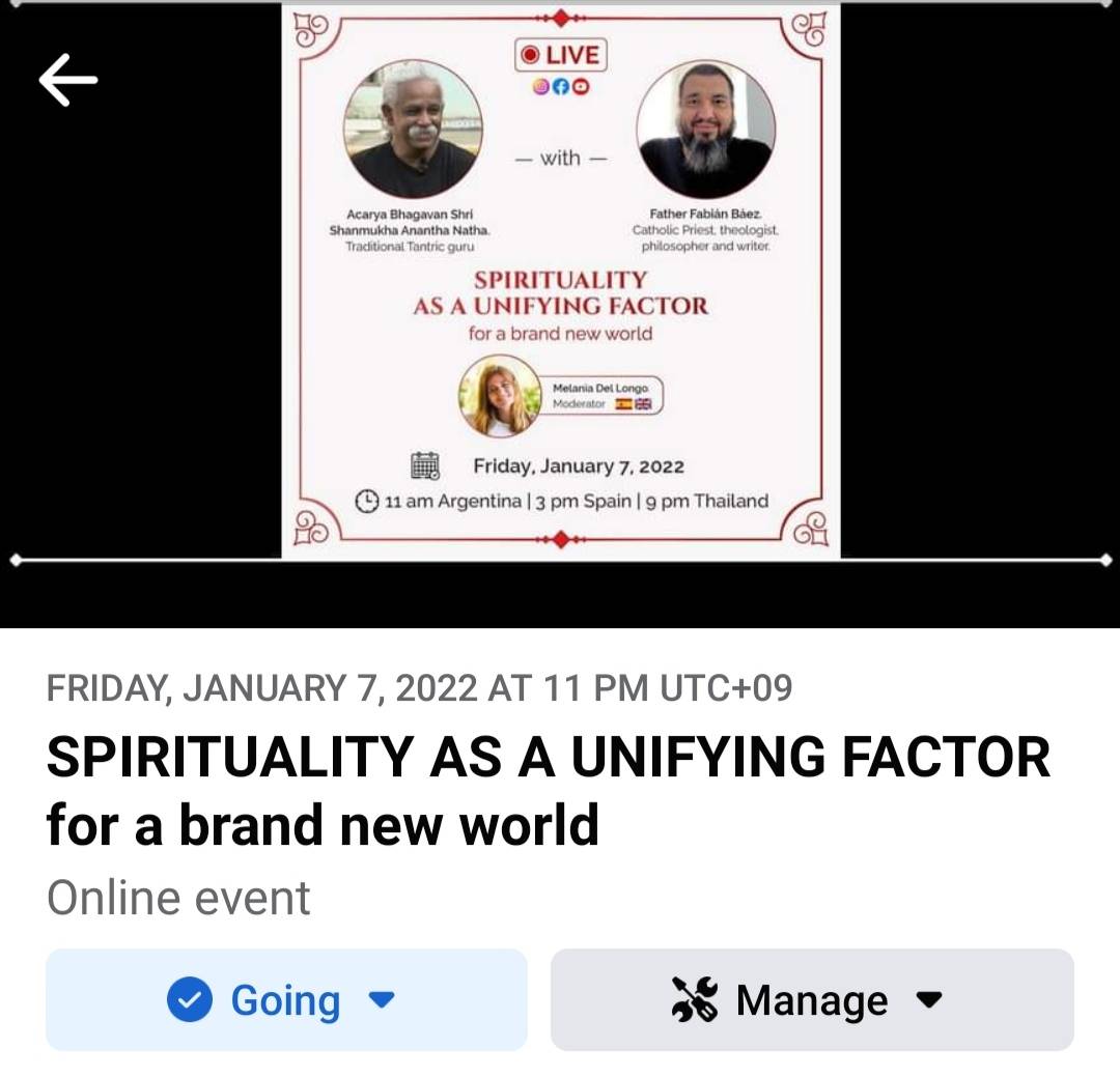 伝統的なタントラの師匠である Bhagavan と、アルゼンチンの牧師、神智学者、哲学者、作家でもある Father Fabián Báez さんとの対談です。どんなお話になるか楽しみですね!